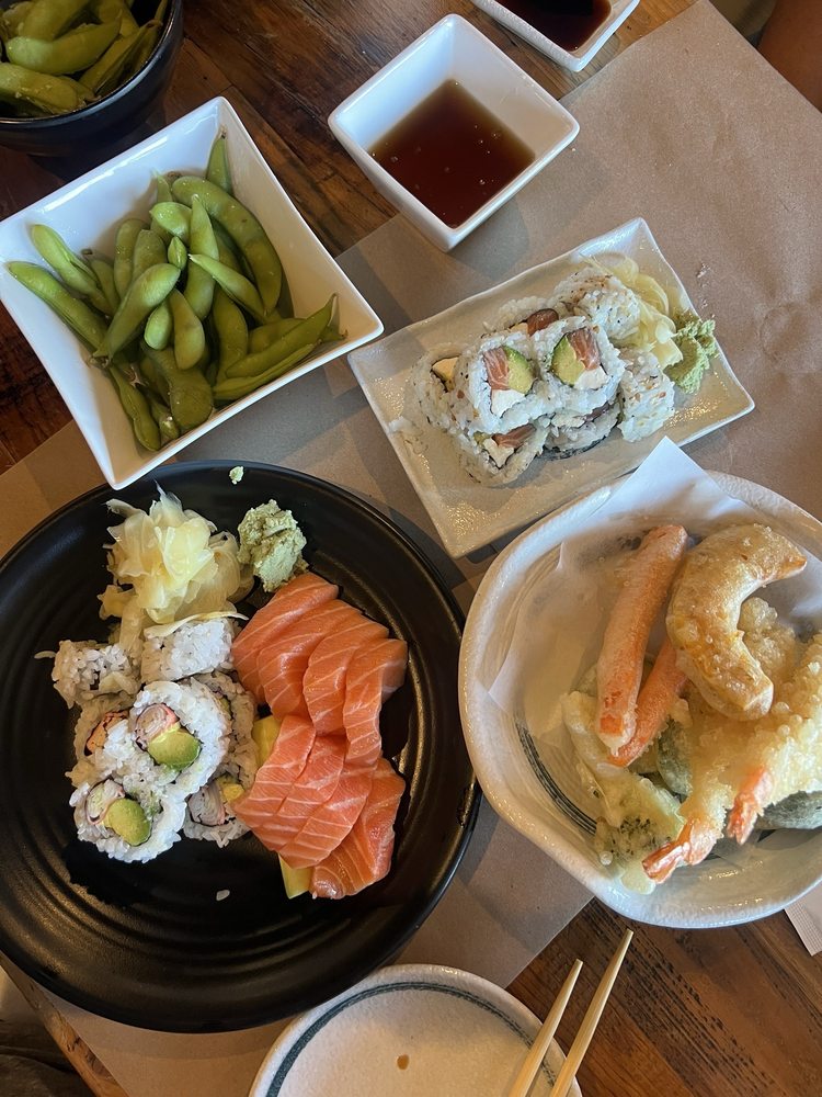 This was our first time dining here for lunch, and it did not disappoint! There is plenty of parking available, and we didn't have to wait for a table. Our waitress was friendly and attentive. The lunch menu offers a wide variety of choices at very reasonable prices. The portion sizes were generous and everything was fresh. Our family ordered the lunch combo featuring sashimi, teriyaki chicken, pork tonkatsu, and chicken tonkatsu. We will definitely be coming back!